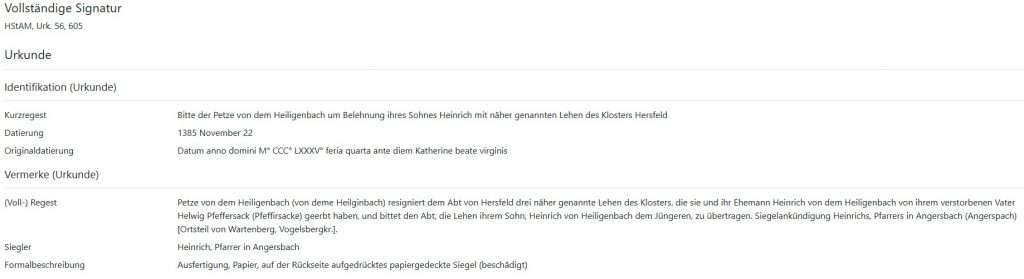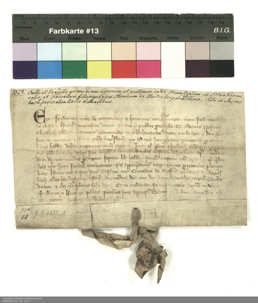 - Hessisches Staatsarchiv Marburg, HStAM, Urk. 56, 605. ↩︎