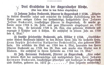 Johann Wilhelm Dieffenbach wurde am 23.2.1755 in Maar geboren. Er wirkte bis 1781 als Vikar in Freiensteinau, von 1781-1788 war er Pfarrer in Wallenrod, bis er schließlich von 1788-1802 das Pfarramt in Angersbach ausübte. Danach war er bis 1813 Pfarrer in Nieder-Moos und starb dort am 2.12.1813.23