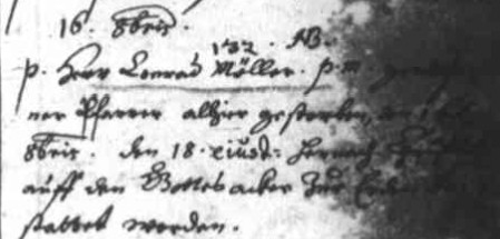 Am 16. Oktober 1635 starb Pfarrer Conrad Möller an der Pest, nachdem er zuvor so viele Opfer zur letzten Ruhe geleitet und zahlreichen Familien Trost gespendet hatte.12