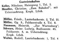 Das Kreisadreßbuch von 1951 zählt folgende 6 Wirtschaften auf: