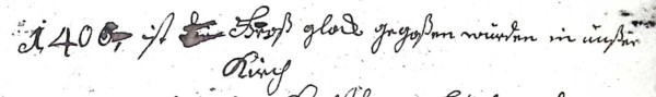 Möllers alte Chronik2 berichtet, „anno 1400“ sei die „große Glocke“ gegossen worden. Ob also schon damals (um 1400) drei Glocken vorhanden waren oder das Geläute beim Turmbau (1498) ergänzt wurde: Fest steht, dass sie rund 400 Jahre lang ihren Dienst taten, bis sie im Jahre 1900 durch ein ganz neues Geläute (mit 3 Glocken), das bei den Gebrüdern Ulrich in Laucha gegossen worden war, ersetzt wurden. Leider — möchte man beinahe sagen. Denn durch das geringe Alter mussten die zwei größten Glocken im ersten Weltkrieg abgeliefert werden3, und die am 22.3.1922 wieder in den Glockenstuhl verbrachten Ersatzglocken ereilte das gleiche Schicksal im zweiten Weltkrieg. Nur das kleine Glöckchen aus dem Gussjahr 1900 überdauerte beide Völkerringen.