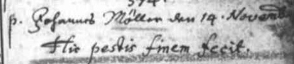 Ende 1612 ging die Pest-Welle zu Ende und der Pfarrer notierte: “Hic pestis finem fecit” (hier machte die Pest Schluss).