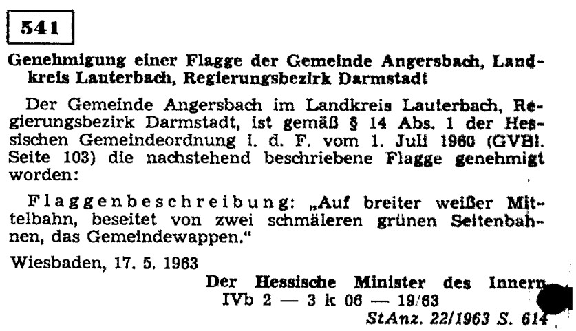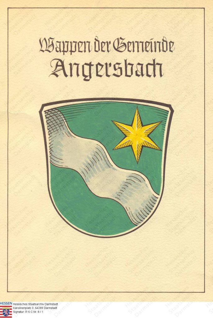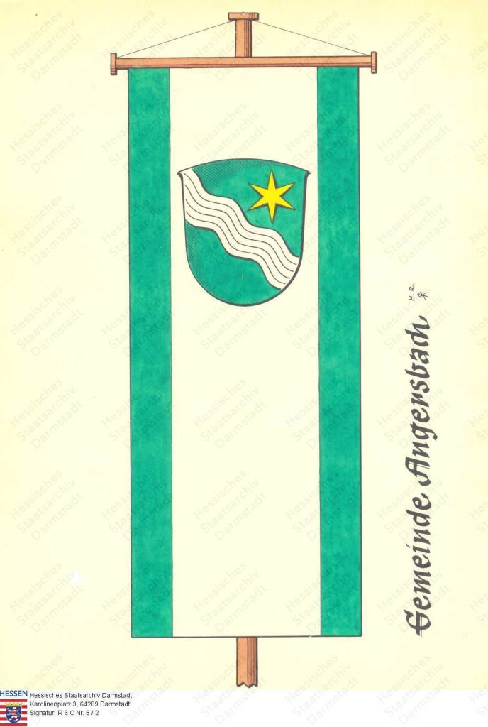 Der Gemeinde Angersbach wurde dann das Recht zur Führung eines Wappens (1951) und einer Flagge (1963) verliehen.13