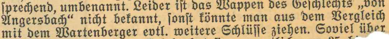 Unser Karl Maurer schreibt in den Lauterbacher Heimatblättern 1943: „Leider ist das Wappen des Geschlechts „von Angersbach“ nicht bekannt, sonst könnte man aus dem Vergleich mit dem Wartenberger evtl. weitere Schlüsse ziehen“.10