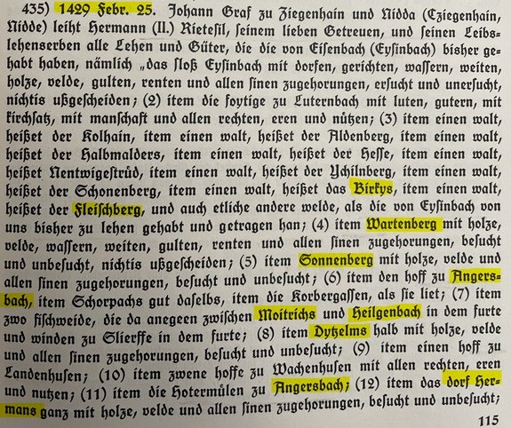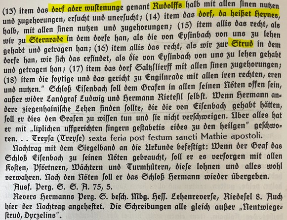 Genannt sind Dizelins (Dietzels), Haylgenbach, Sassen, Strut, Hermans und Hunoldes (im zweiten Bild gelb markiert).