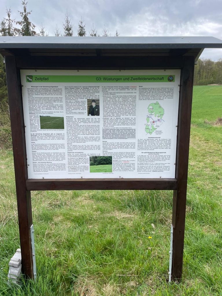 - Dieser Abschnitt wurde der von Otto Schnell bearbeiten Festschrift „Vergangenheit und Gegenwart“, S. 60 ff. entnommen, leicht gekürzt und nur um einige wenige Erläuterungen ergänzt, die dem besseren Verständnis dienen; weitere Informationen zu Wüstungen in Angersbach und Landenhausen: Hilbrig, aus Angersbachs Geschichte erzählt, S. 101; Hilbrig, Landenhausen in 12 Jahrhunderten, S. 29 ff.; Hilbrig, Streifzug, S. 14 ff.; Mackenthun, Wüstungen im Kreis Lauterbach, S. 42 ff. ↩︎